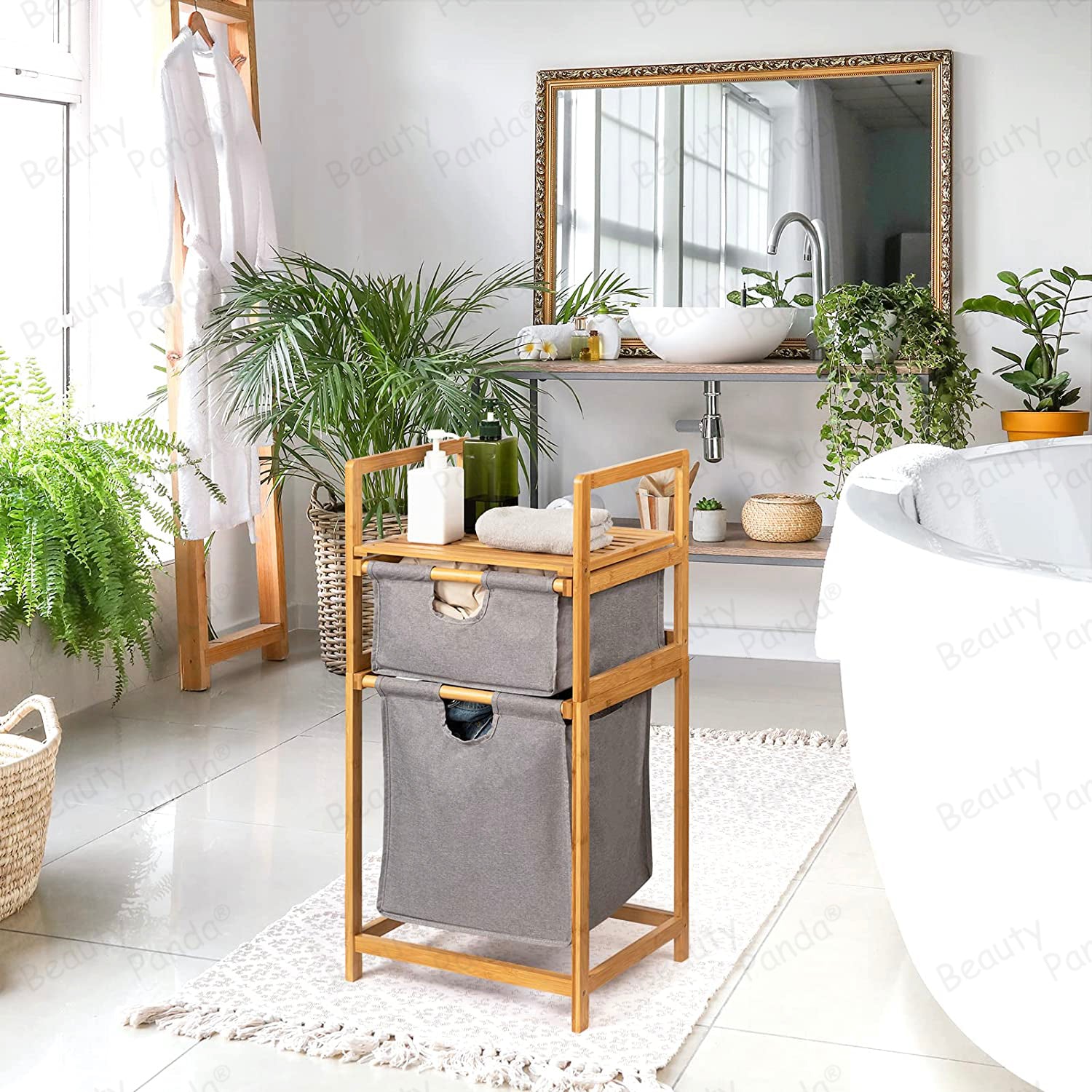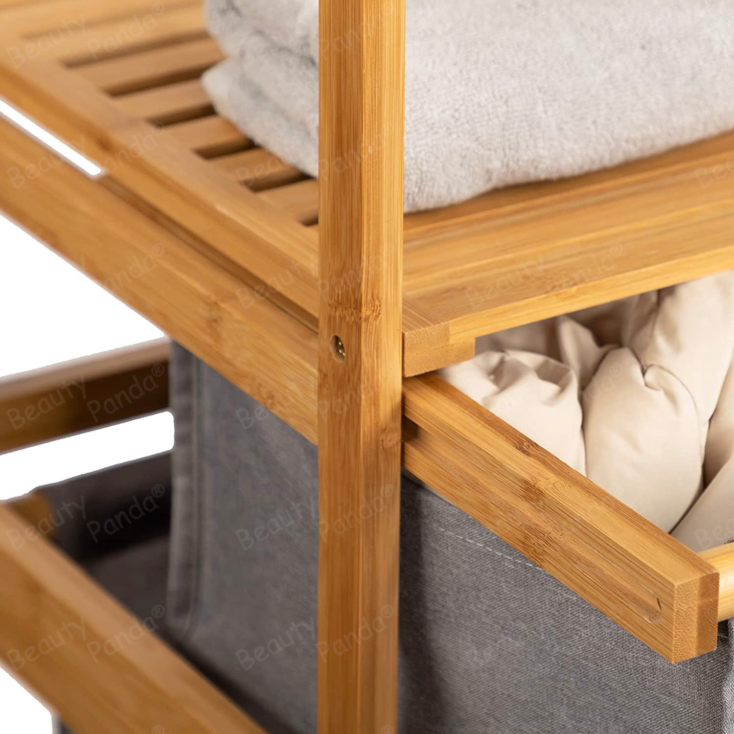 Beauty Panda Teak wood Freestanding Laundry Storage Basket, Household Laundry Basket with Shelf, Laundry Storage Rack Dormitory (Bin11)