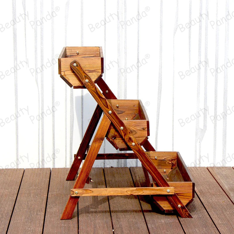 Beauty Panda Plant Stand Plant Shelf,Teak Wood Plant Stands Multi-Functional Creative Plant Shelves for Multiple Plant for Indoor Outdoor Garden Balcony Living Room(PT3S)