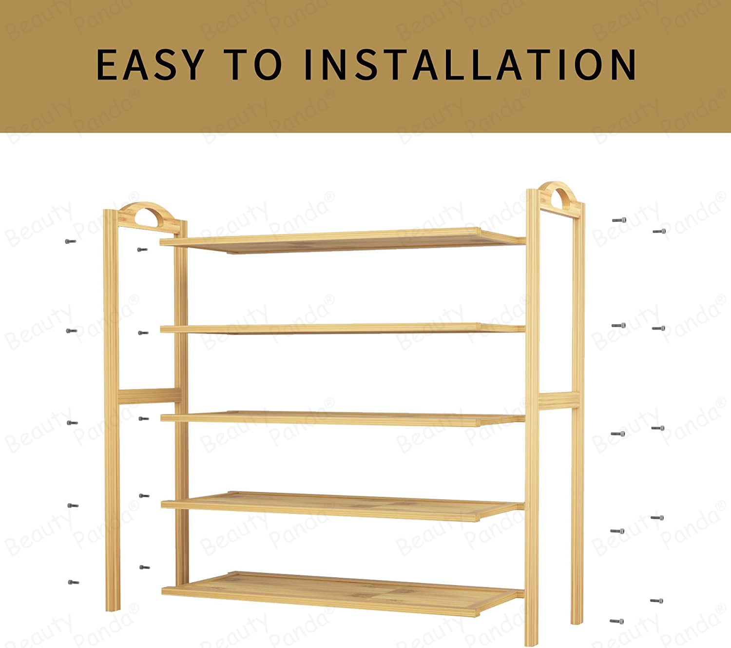 Beauty Panda Teak Wood Shoe Rack 5-Tier Shoe Storage Organizer Entryway Shoe Shelf (SH11T5)