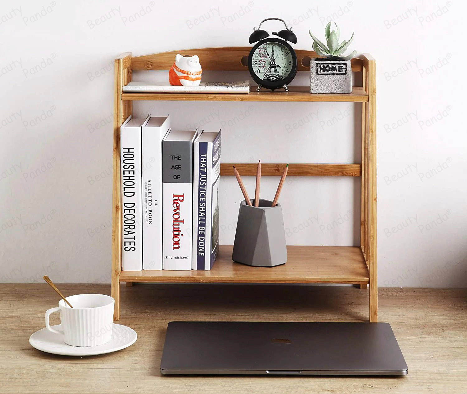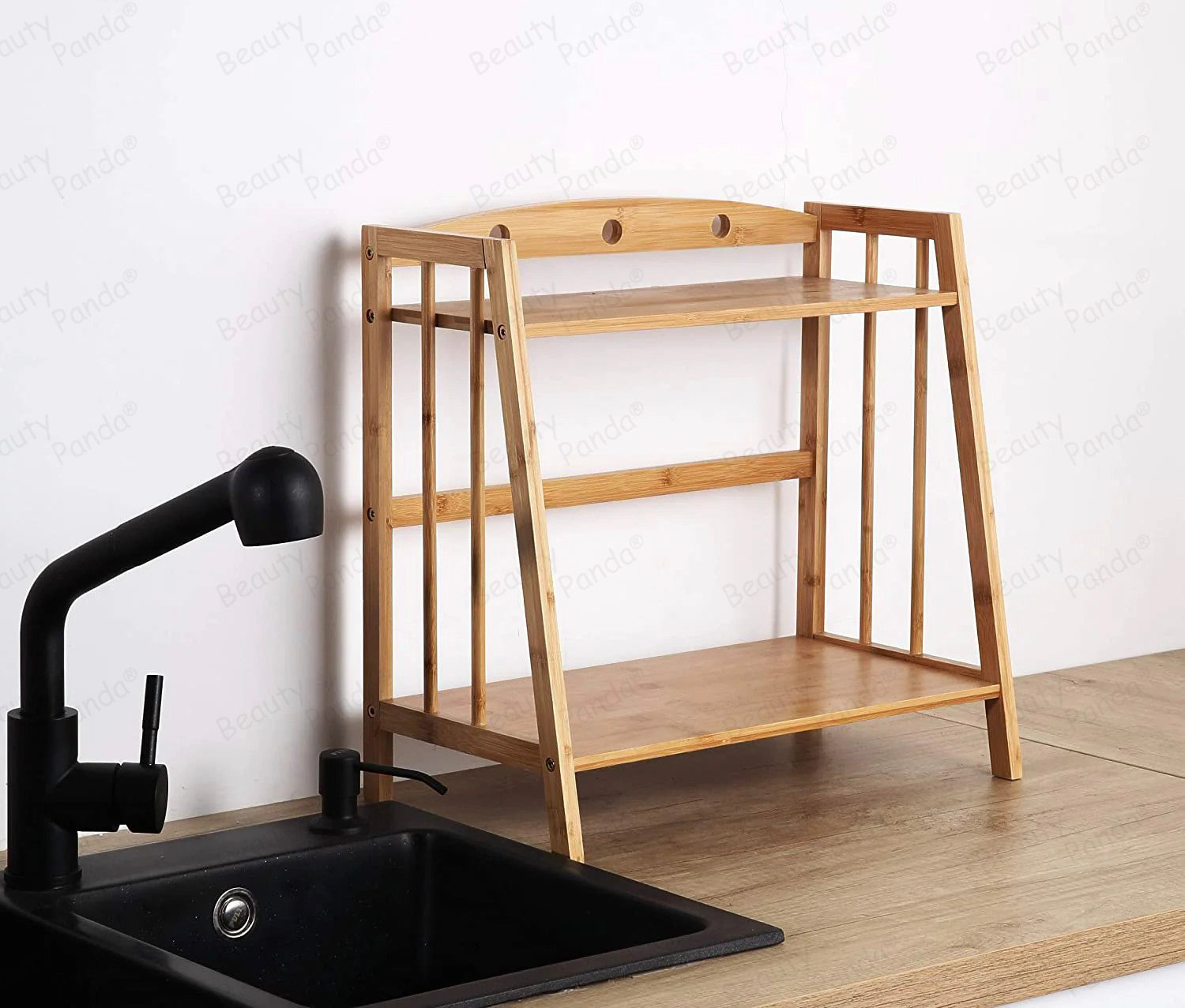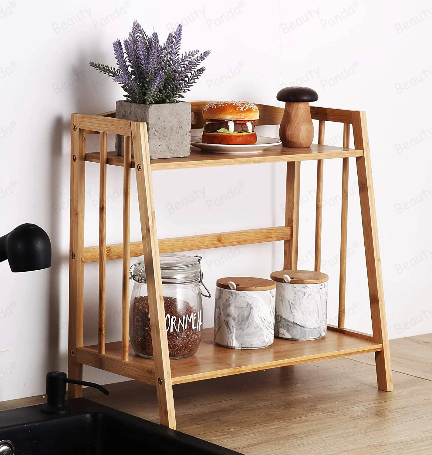 Beauty Panda Wood Spice Rack Organizer - Seasoning Organizer for Cabinet - 2 Tier Spice Shelf Teak Wooden - Stackable Free Standing Space Saving Spice Rack for Countertop , Kitchen (SP2A)